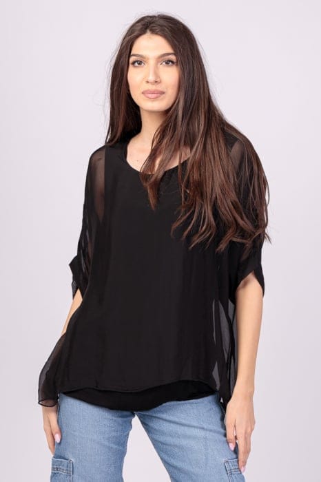 Bluza din matase naturala neagra, cu funda pe spate mărime mare