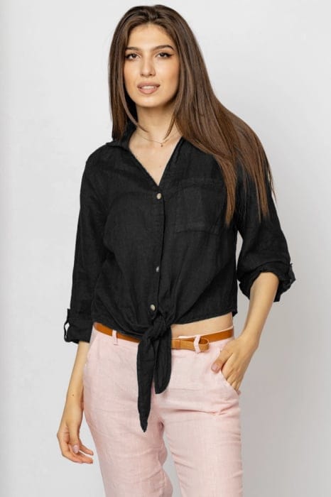 Specification: Camasa neagra din in cu nod in fata mărime mare