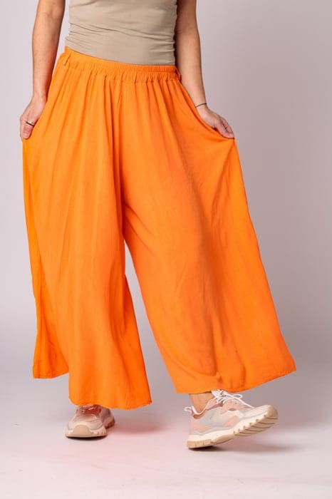 Pantaloni largi, de vara, din vascoza, cu curea elastica, portocalii mărime mare