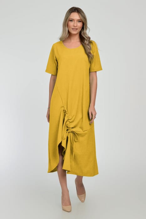 Rochie lunga A-line din in mercerizat cu siret la poale, galben mustar 2XL, 3XL, 4XL, 5XL
