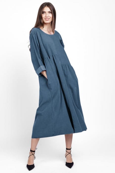 Maneci lungi Decolteu rotund la baza gatului Are buzunare laterale ascunse Material: bumbac Este talie unica si se potriveste marimilor: M, L si XL, 2XL Dimensiuni: umeri 46 cm, bust 110 cm, sold 140 cm, lungime 125 cm Modelul nostru are inaltime…