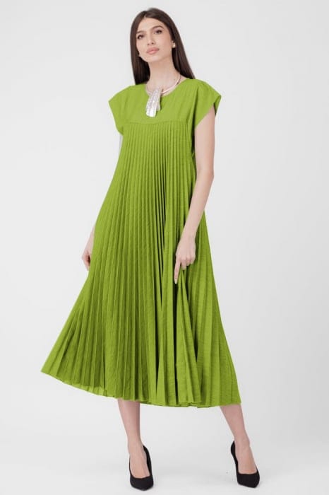Rochie plisata A-line lunga, material fin si usor creponat, verde oliv mărime mare